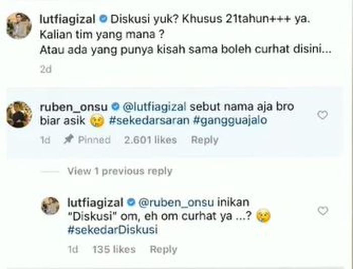 Mendapat balasan komentar dari Ruben Onsu, Lutfi lantas membalas komentar Ruben.