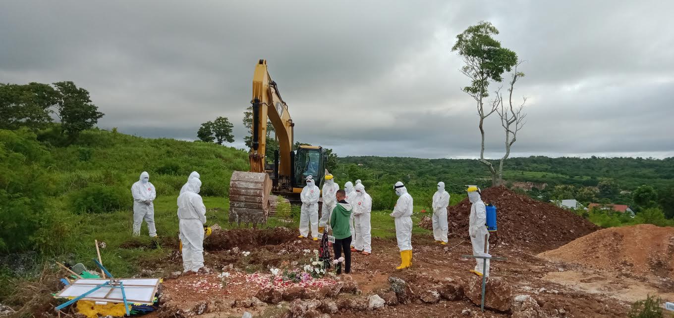 POS-KUPANG.COM|KUPANG-- Sore itu, cuaca agak mendung. Dari kejauhan terdengar sirene kematian mobil ambulans dan beberapa mobil tim gugus tugas covid-19 ngebut memasuki pintu depan TPU Damai Fatukoa, Kelurahan Fatukoa, Kota Kupang, Nusa Tenggara Timur (NTT).
