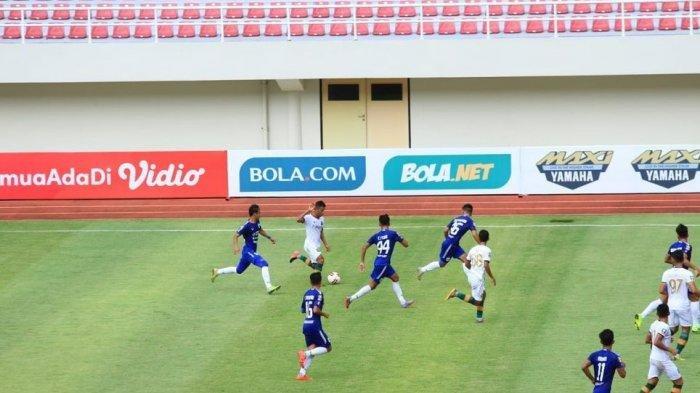 Bola mengenai kaki dan meluncur masuk ke gawang yang dikawal Jandia Eka Putra. Setelah itu kedua tim punya sejumlah peluang mencetak gol.