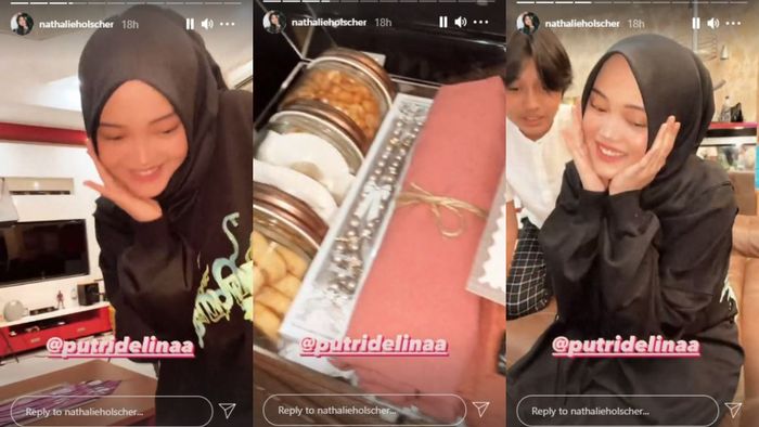 Dalam postingan tersebut, Nathalie mengunggah video yang menunjukkan hampers pemberian Putri Delina untuknya.
