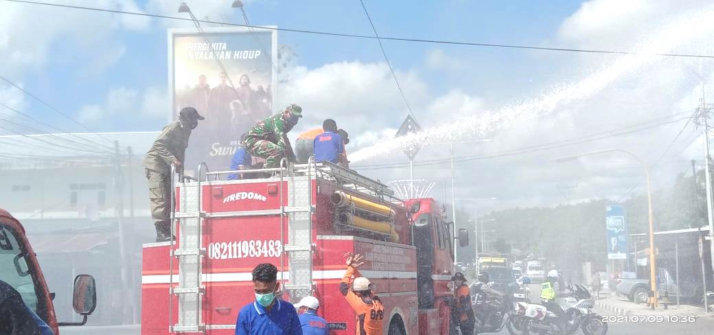 POS-KUPANG.COM, KEFAMENANU- Aparat TNI-AD Kodim 1618/TTU dan Polres TTU menggandeng Pemda Timor Tengah Utara dalam hal ini, Dinas Perhubungan dan Badan Penanggulangan Bencana Daerah (BPBD) melakukan penyemprotan disinfektan ke fasilitas-fasilitas umum.