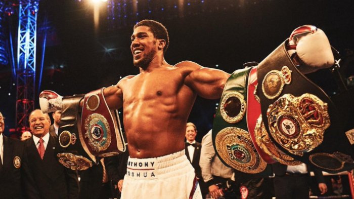 Anthony Joshua adalah pemegang sabuk juara kelas berat versi IBF, IBO, WBA, dan WBO.