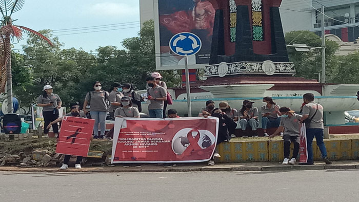 Ada juga baliho yang bertuliskan, Solidaritas Prodi, Tanggung Jawab bersama akhiri HIV AIDS di NTT.