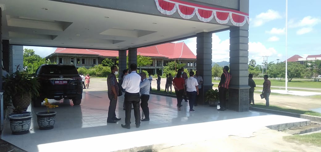 Hampir semua pegawai yang berada di kompleks perkantoran (Civic Centre) Kabupaten Nagakeo juga keluar ruangan. (mm).