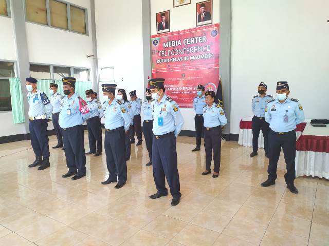 ASN Rumah Tahanan Negara Kelas IIB Maumere, mengikuti apel pagi secara virtual bersama UPT Imigrasi dan Pemasyarakatan