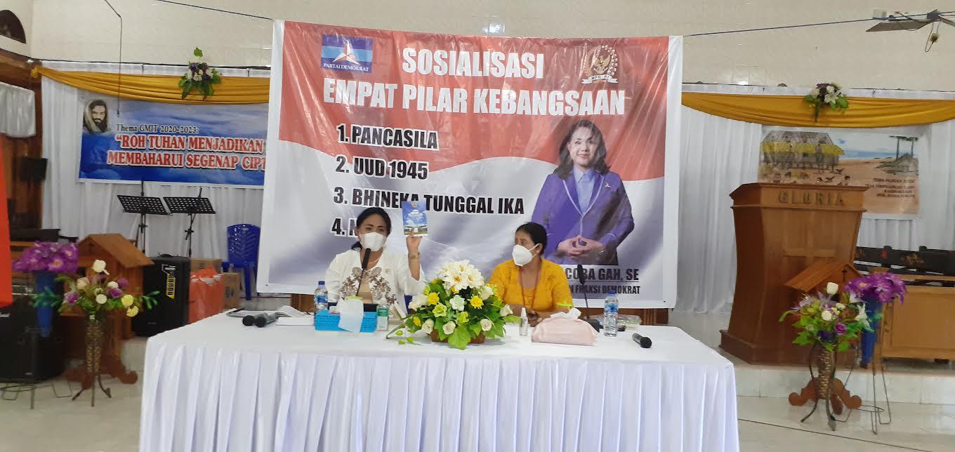 Peningkatan pengetahuan tentang dasar negara itu dilakukan melalui sosialisasi dengan menghadirkan narasumber Anggota DPR RI Anita Jacoba Gah.