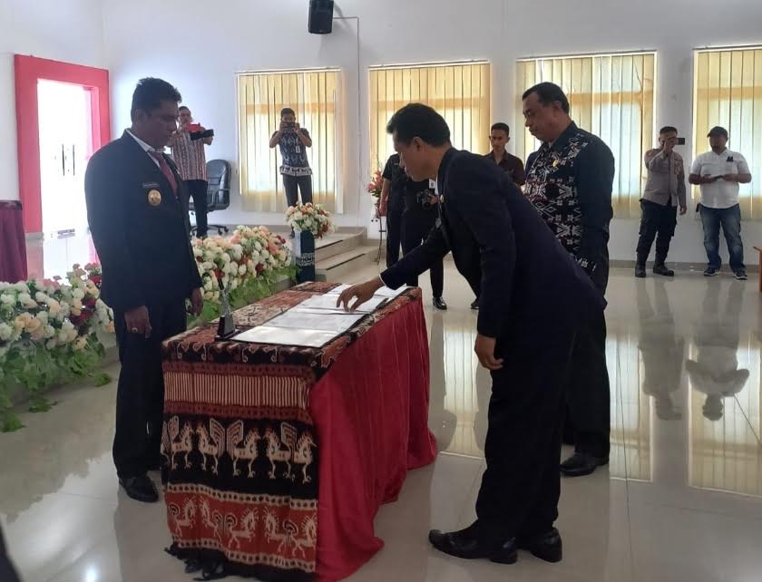 Serah terima jabatan ditandai dengan penandatanganan berita acara sertijab serta penyerahan dokumen oleh Domu Warandoy kepada Umbu Ngadu Ndamu.