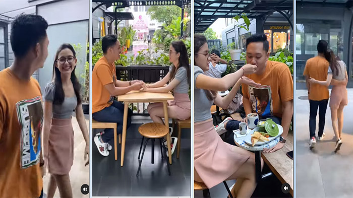 Kedua bahkan terang-terangan saling berpegangan tangan dan saling suap makan di tempat umum