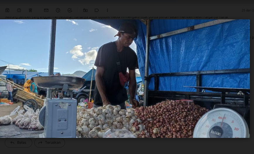 Jep, salah seorang pedagang bawang merah dan putih di Pasar Talibura mengatakan, kini harga bawang merah menyentuh Rp 25 ribu per kilogram