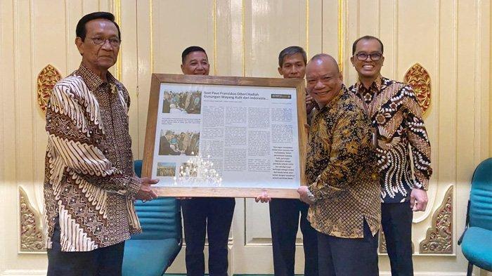Dalam kesempatan tersebut, kepada Sultan HB X delegasi PWKI menyerahkan Pigura berisi kliping berita dan foto-foto kunjungan delegasi PWKI dalam audiensi umum di Basilika St Petrus Vatikan, Rabu 16 November 2022. (*)