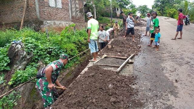 TNI dan Warga Tenawahang Flores Timur Gotong Royong Bersihkan Parit