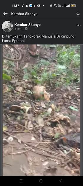 "Ditemukan tengkorak manusia di Kampung Lama Eputobi," tulisnya disertai dokumentasi.