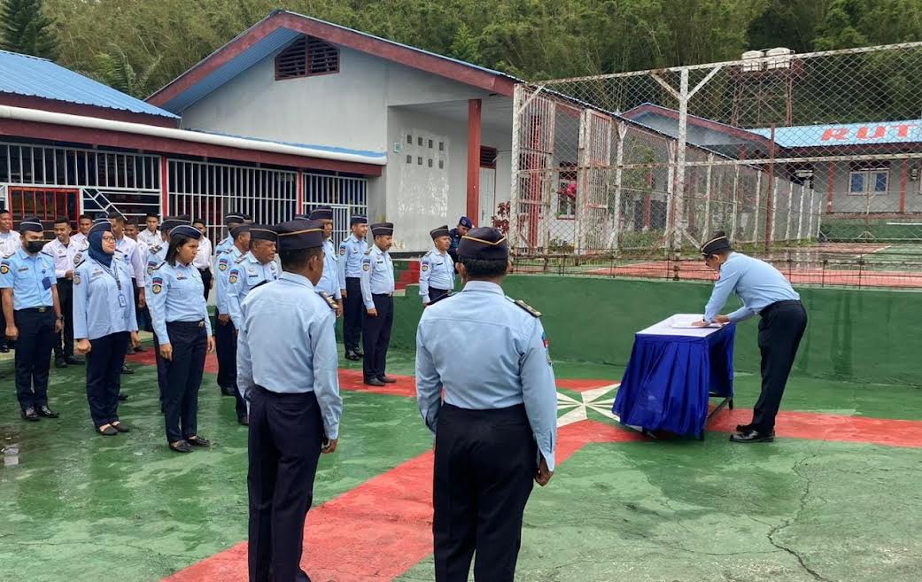 POS-KUPANG.COM, BAJAWA - Rumah Tahanan atau Rutan Kelas IIB Bajawa kembali melaksanakan ikrar bersama dan penandatanganan pakta integritas netralitas bagi Aparatur Sipil Negara (ASN) di lingkungan Rutan Kelas IIB Bajawa pada, Senin 13 Februari 2023.
