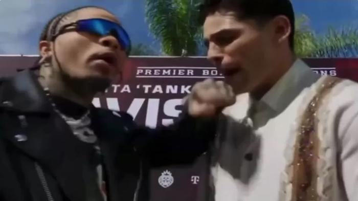 Peristiwa itu terjadi dalam sesi face off. Tapi malah Gervonta Davis melayangkan sebuah hook kiri yang nyaris mengenai rahang Ryan Garcia.
