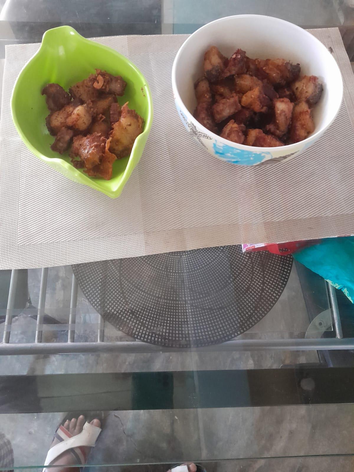 Beta mulai dayung alias kunya dan ma ‘a ale pelan pelan ini daging babi tepung goreng kiriman dari mama mantu dari Anakalang Sumba Tengah.