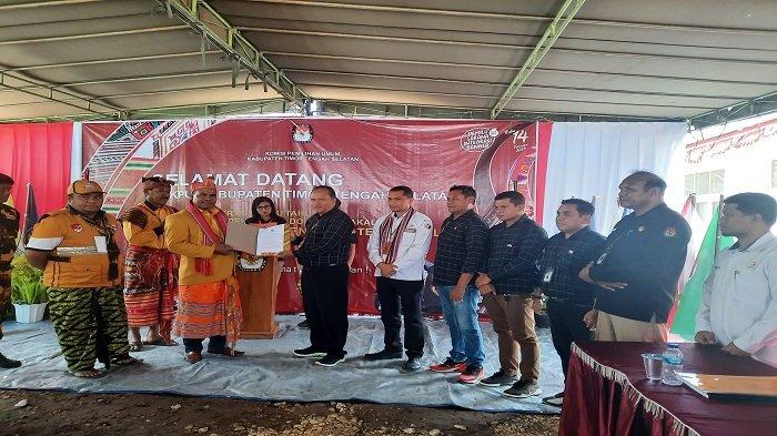 Terpantau, berkas bakal caleg partai Hanura diserahkan langsung oleh ketua DPC Partai Hanura, Marthen Tualaka dan diterima Ketua KPU Kabupaten TTS, Matheus A. Krivo didampingi Komisoner KPU dan Bawaslu Kabupaten TTS.