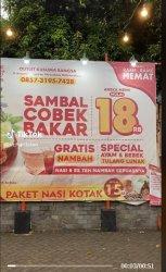 Dengan sambal khas dan lalapan serta menu cah kangkung dan aneka minuman.