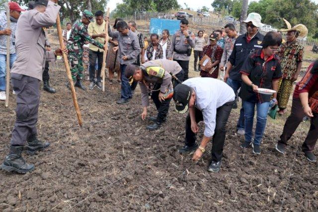 Untuk itu pada Jumat 2 Juni 2023 mulai ditanami jagung Hibrida yang ditandai dengan Penanaman secara simbolis oleh Kapolres Kupang AKBP Anak Agung Gde Anom Wirata dan Bupati Kupang Drs. Korinus Masneno.