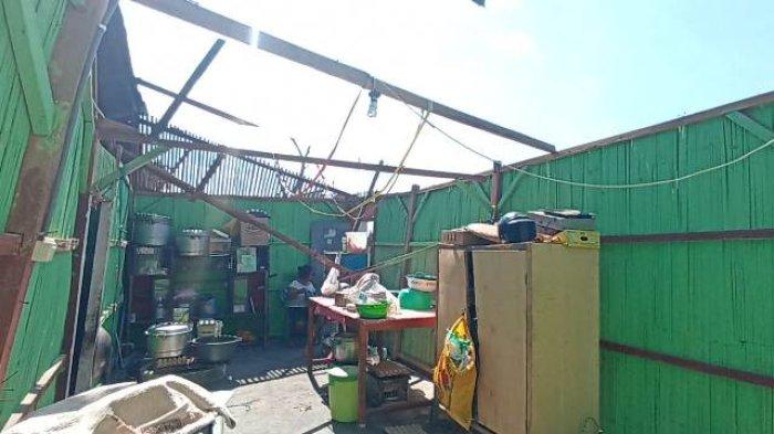 Pasalnya atap seng dan kayu penyangga roboh. Sebagian seng terangkat hingga ke laut.