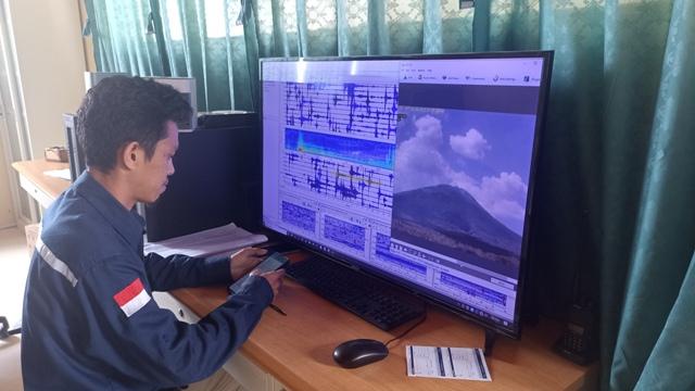 "Kolom abu teramati berwarna kelabu dengan intensitas tebal condong ke arah barat dan barat laut. Erupsi ini terekam di seismogram dengan amplitudo maksimum 34 mm dan durasi ± 42 detik," terang Ara Kian.