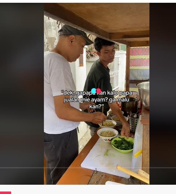 Dilihat dari video terdapat seorang bapak yang usahanya jualan mie ayam demi memenuhi kebutuhan keluarga.