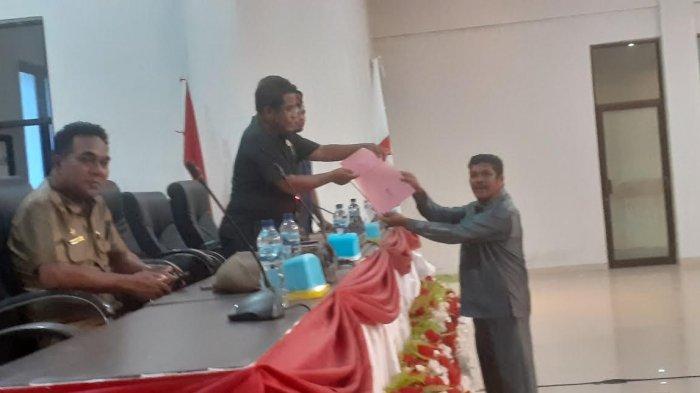 Terlihat satu persatu fraksi DPRD Sumba Barat Daya menyerahkan usulan tiga nama calon penjabat bupati Sumba Barat Daya yang secara resmi diterima Ketua DPRD Sumba Barat Daya, Rudolf Radu Holo.