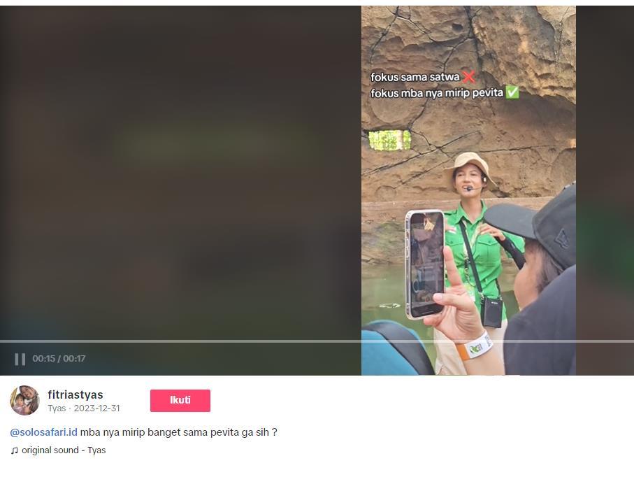 Video Berita Viral berdurasi 16 detik itu sontak menarik perhatian banyak warganet karena kemiripan wajah petugas kebun binatang dengan aktris Pevita Pearce.