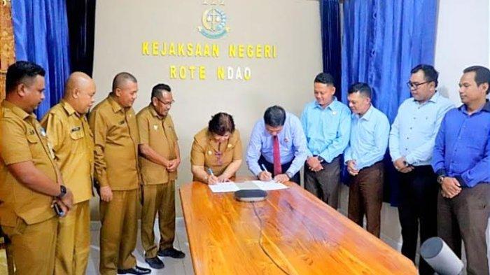 Penandatanganan nota kesepakatan dilakukan oleh Bupati Rote Ndao Paulina Haning-Bullu dan Kepala Kejaksaan Negeri Rote Ndao Budi Narsanto.