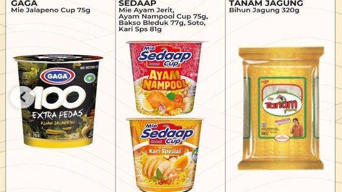 Sedaap mie ayam jerit, ayam nampool cup, bakso bleduk Rp 9.100/ 2 pcs