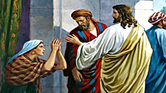 Perempuan itu seorang Yunani bangsa Siro-Fenisia. Ia memohon kepada Yesus untuk mengusir setan itu dari anaknya. Lalu Yesus berkata kepadanya, "Biarlah anak-anak kenyang dahulu, sebab tidak patut mengambil roti yang disediakan bagi anak-anak dan melemparkannya kepada anjing."