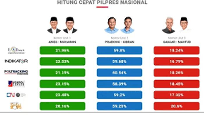 Berikut hasil hitung cepat atau quick count sementara perolehan suara partai dalam Pemilihan Legislatif 2019 silam, dari berbagai lembaga survei: