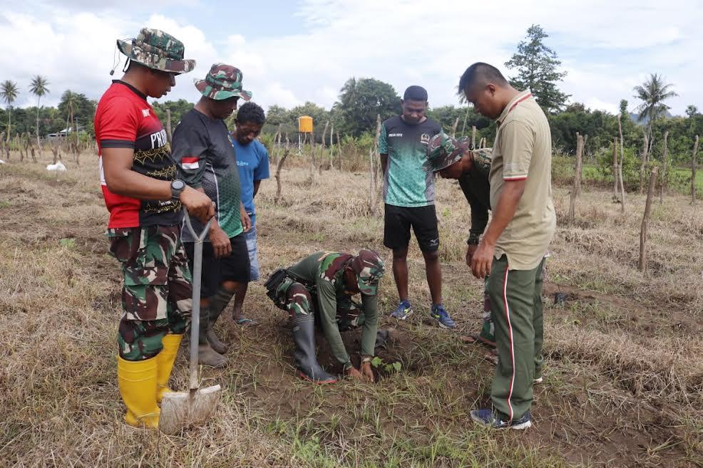 Komandan Kodim 1605/Belu Letkol Arh Suhardi,S.T, menyampaikan pengembangan budidaya tanaman anggur dengan melakukan penanaman bibit anakan anggur sebanyak 100 pohon.