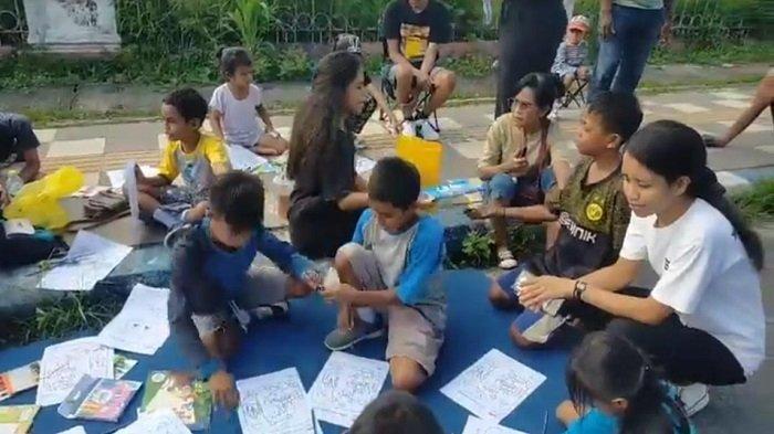Rumah Belajar Tefila Kupang mengadakan kegiatan mewarnai gratis di area car free day, Jl. El Tari Kota Kupang