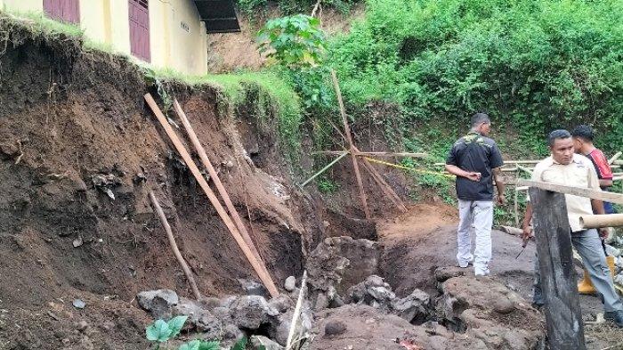 Pantauan POS-KUPANG.COM di lokasi kejadian, rumah dua warga yang tewas tertimbun material longsor berupa batu dan tanah saling berdekatan.