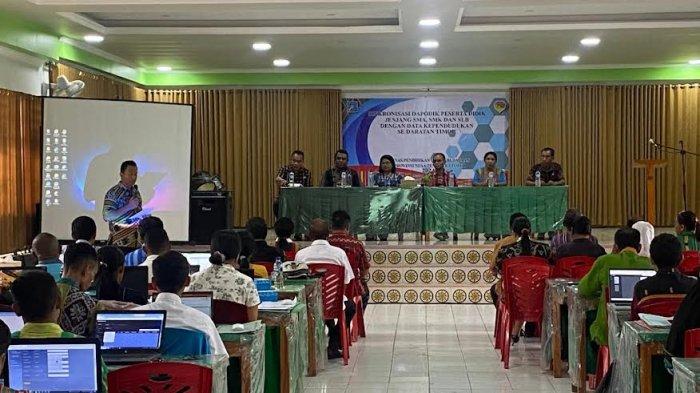 POS-KUPANG.COM, SOE - Guna mendukung kerja tenaga operator sekolah dalam melaksanakan tugas dan tanggung jawabnya mengentri Dapodik peserta didik jenjang SMA, SMK dan SLB, Dinas Pendidikan dan Kebudayaan (PK) Provinsi Nusa Tenggara Timur menggelar kegiatan sinkronisasi dapodik peserta didik dengan data kependudukan sedaratan Timor di Ruang Laboratorium Komputer SMA Negeri 1 Soe beberapa waktu lalu.