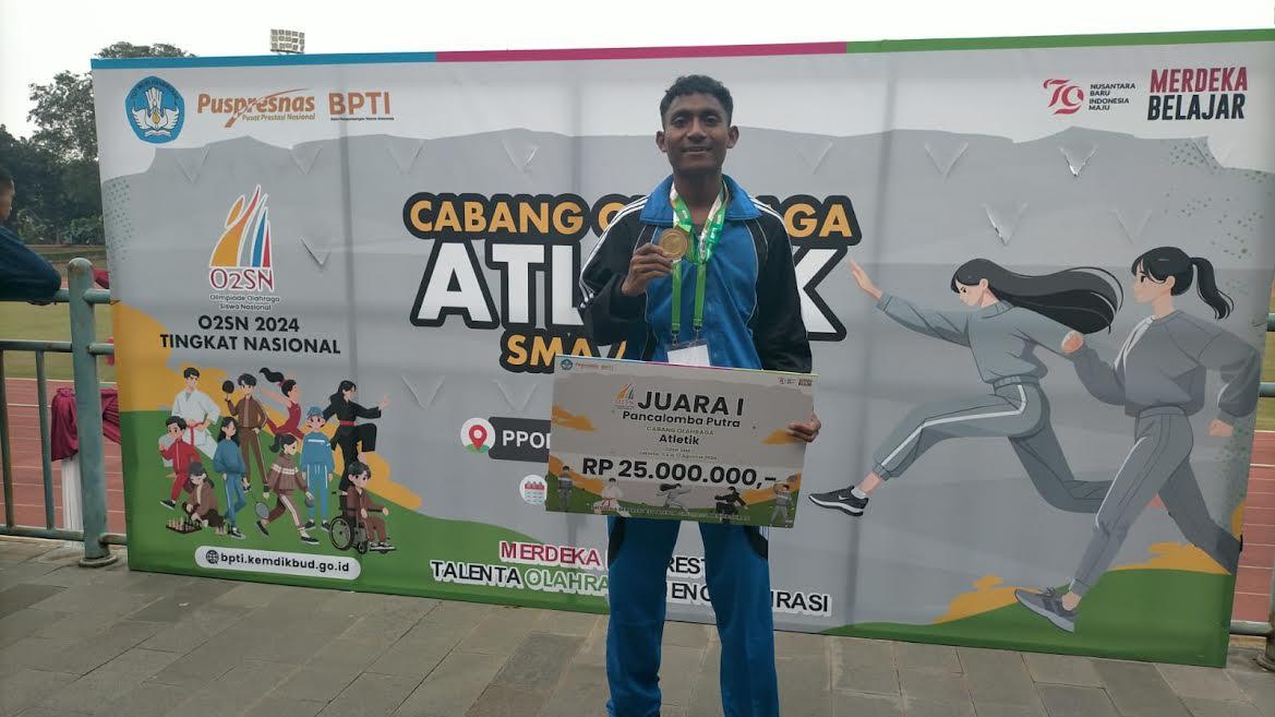 POS-KUPANG.COM, KUPANG - Siswa Kelas XI SMKN 2 Wewewa Barat, Kabupaten Sumba Barat Daya, Provinsi NTT, Donandus Ama Kii, meraih juara satu nasional Olimpiade Olahraga Siswa Nasional (O2SN) tahun 2024.