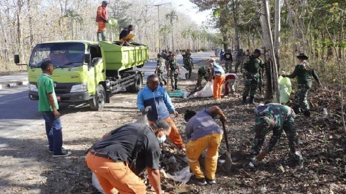 "Sampah-sampah ini kalau tidak dibersihkan tentu saja akan merusak pemandangan dan keindahan jalan disepanjang kawasan hutan jati Nenuk ini sehingga perlu dilakukan tindakan nyata dengan membersihkannya," ucap Dandim.