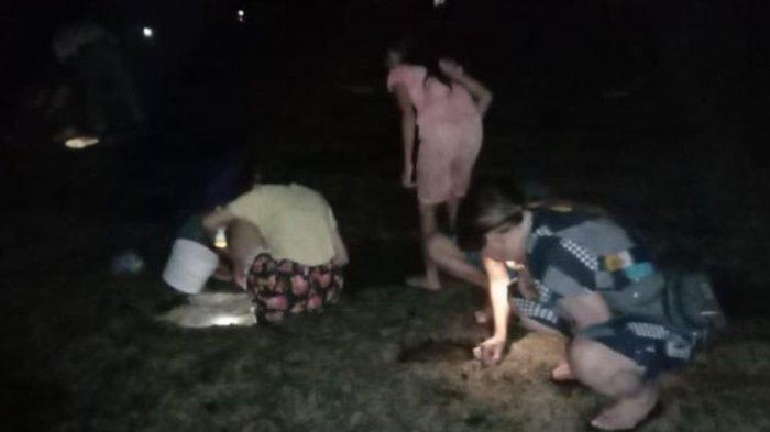 Mereka berbondong bondong menyusuri kolam-kolam kecil yang berada pesisir pantai itu sembari berburu ule nale.