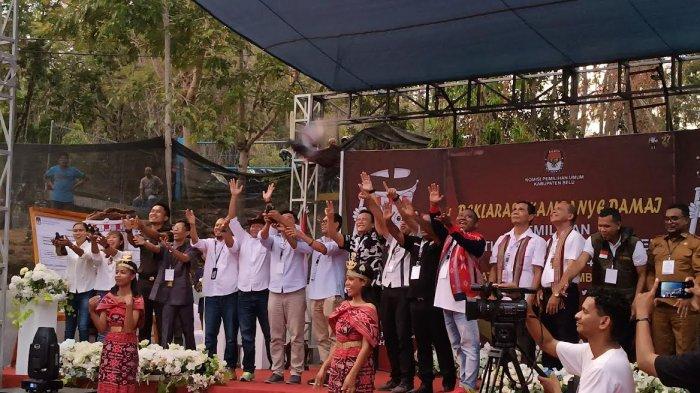 POS-KUPANG.COM, ATAMBUA - Komisi Pemilihan Umum (KPU) Kabupaten Belu menyelenggarakan Deklarasi Kampanye Damai yang diikuti oleh empat pasangan calon (Paslon) Bupati dan Wakil Bupati Belu dalam Pemilihan Kepala Daerah (Pilkada) Belu 2024.