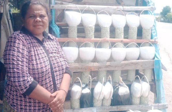 "Kami pake wadahnya itu namanya sokal itu dibikin dari daun lontar. Kami anyam baru taruh lebih bagus saja dan lebih baik daripada pakai kantong plastik " ujar Lala. (nov)