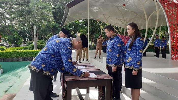 POS-KUPANG.COM, KUPANG - Pemerintah Kota Kupang menggelar Apel Korpri sekaligus launching dan penandatanganan komitmen penerapan core values ASN BerAKHLAK serta employer branding Bangga Melayani Bangsa di Lapangan Upacara Kantor Wali Kota Kupang, Senin 17 Maret 2025.