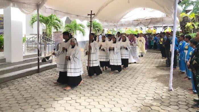 Meski cuaca pagi ini mendung dan sempat diguyur hujan, semangat umat tidak surut untuk menghadiri prosesi bersejarah ini.