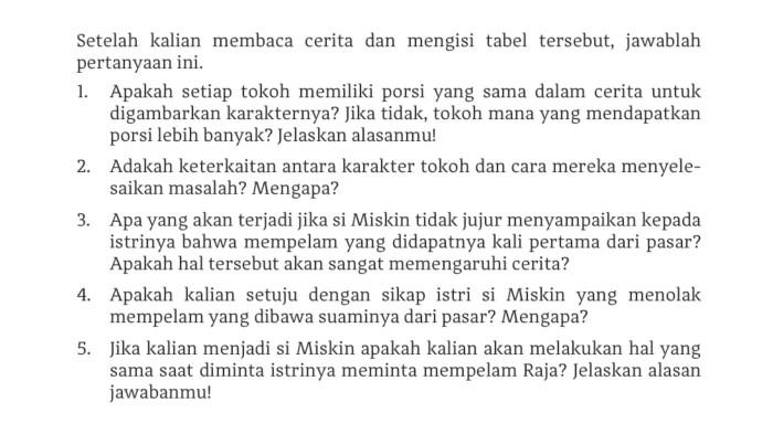 Setelah membaca cerita berjudul "Hikayat si Miskin", siswa dapat menjawab beberapa pertanyaan di halaman 63.