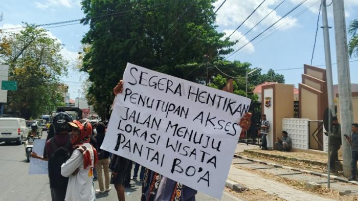 Salah satu tuntutan mereka yakni, membuka kembali akses jalan menuju lokasi wisata Pantai Boa yang sempat ditutup.