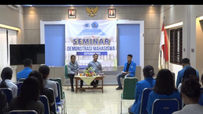 POS-KUPANG.COM - Aula Universitas Flores (Uniflor) menjadi pusat kegiatan seminar bertema "Domonstrasi Mahasiswa" yang digelar pada Rabu 17 September 2025. Acara yang diselenggarakan BEM Uniflor Ende ini bertujuan mengajak mahasiswa untuk memahami praktik demokrasi yang baik, menjaga persatuan dan kesatuan, menolak anarkisme dan provokasi, melawan isu negatif, serta menciptakan situasi kondusif di Pulau Flores.