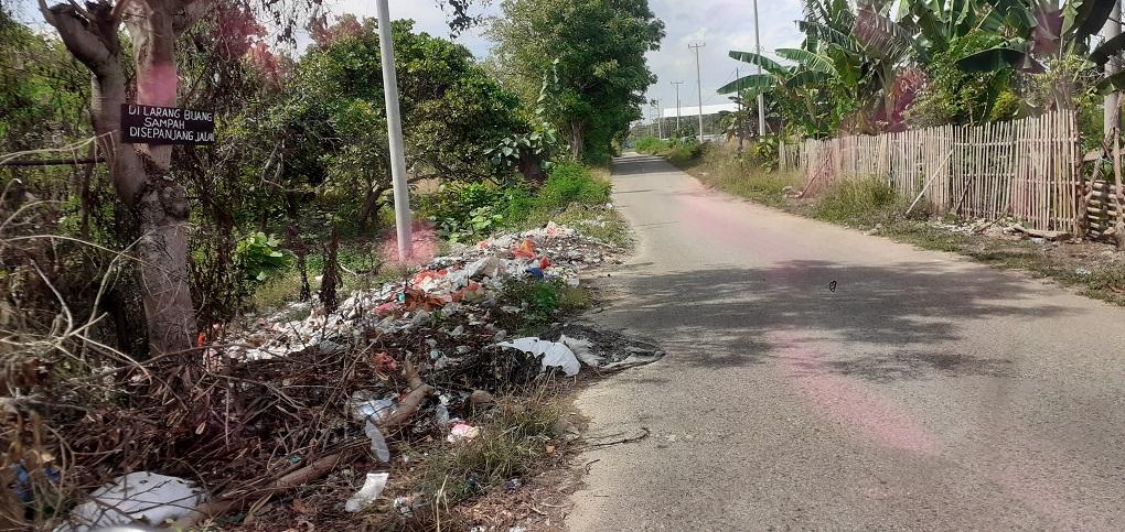 Baru Dibersihkan, Warga Kembali Buang Sampah di Jalan Waikelo Lama Menuju Pelabuhan Waikelo Baru, Kabupaten Sumba Baat Daya.