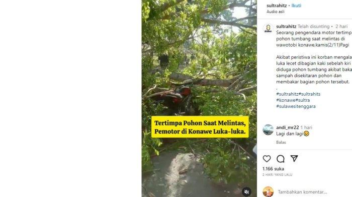 Berita Viral Pohon Tumbang Timpa Pengendara Motor di Kecamatan Wawotobi Kabupaten Konawe Sultra