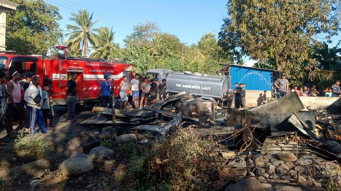 Pada saat kejadian itu, penjaga kios melihat api muncul dari depan kios tepatnya ditempat penjual BBM (pertalite) enceran.
