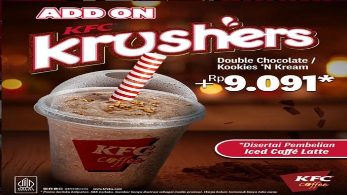 Ada KFC Krushers Double Chocolate atau Kookies 'N Kream cuma menambah Rp 9.091 saja. Pecinta ayam KFC bisa menikmati sensasi segarnya minum