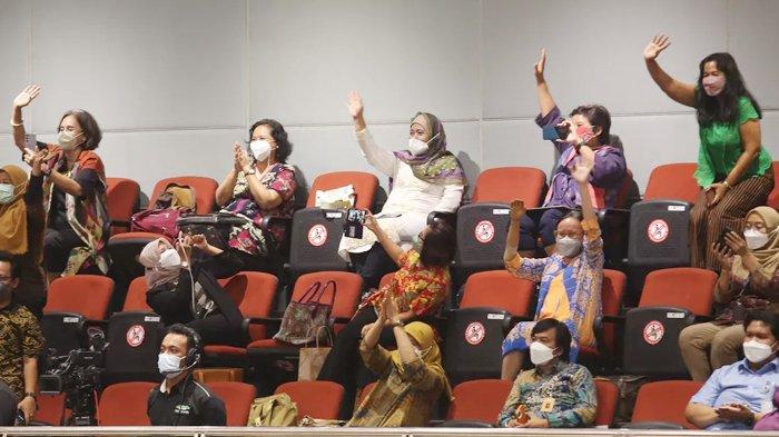 Setelah palu diketuk, suara tepuk tangan membahana langsung terdengar di ruang rapat paripurna tersebut.